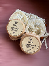 Optional: use the loofah disc to place under the conditioner bar so it can dry between uses and avoid becoming slimy. The sisal bag can be use for when the shampoo bar gets too small to handle.